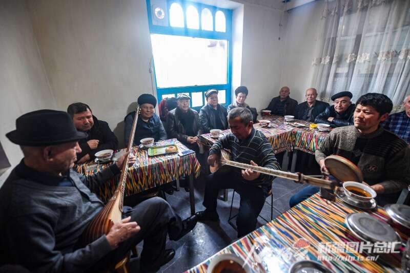 喝着大碗茶,弹着都塔尔,唱起民歌,叙旧聊天,街坊邻居和天南地北的游客只需要花两三块钱,便能在这里享受惬意时光。