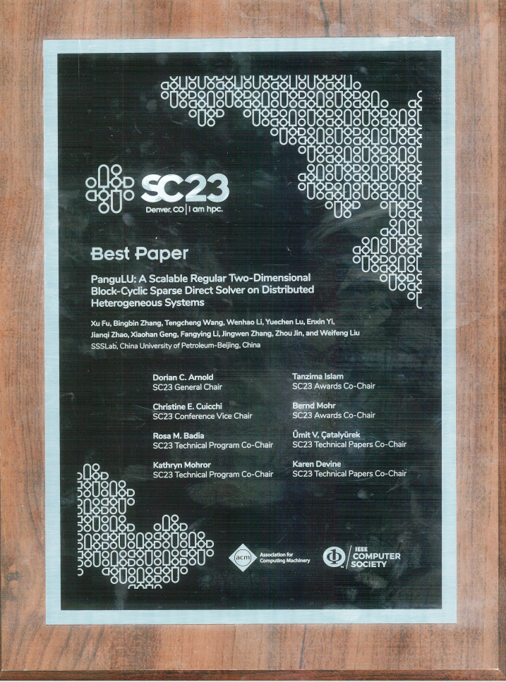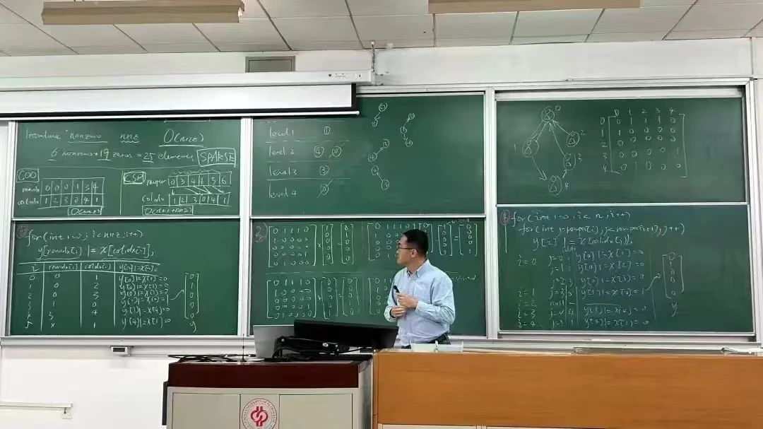 刘伟峰的研究方向恰好就是高性能数值“线性代数”,他在这个方向进行了十余年的探索,带领团队开发的开源稀疏直接法解法器PanguLU在2023年获高性能计算领域国际顶级会议SC最佳论文奖,这也是SC大会举办35年来国内科研单位首次摘得该奖项。这样的学术成绩让刘伟峰更深入地思考如何将科研融入教学,开设一门高难度、贴近应用,且具备国际视野的全英文“线性代数”课——也是学生口中的 “魔鬼课程”。