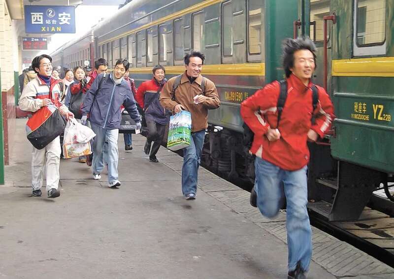 2004年,放假回家的大学生在西安火车站赶火车。 焦宏涛 摄