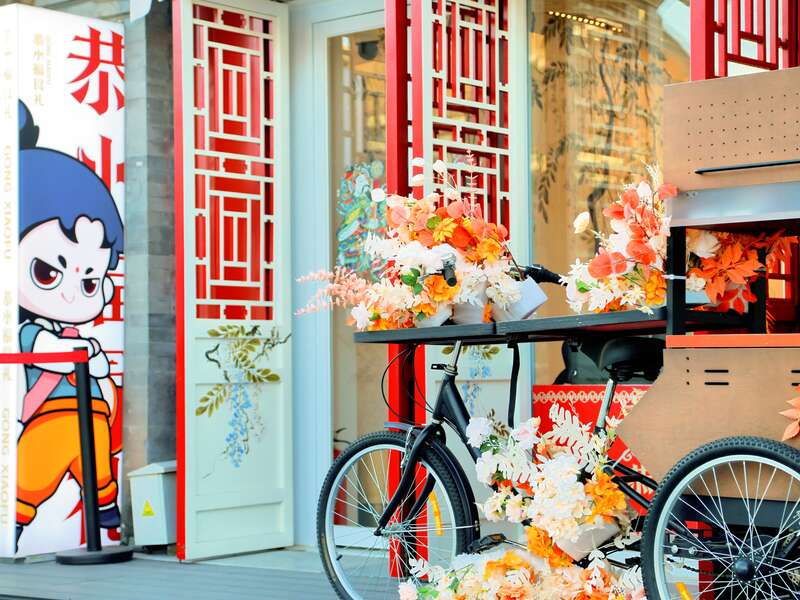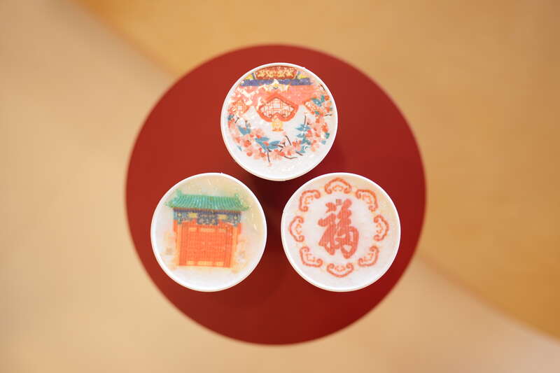 在这里,观众不仅能品尝到拥有“天下第一福”“府邸福苑”等限定特色拉花的咖啡和结合四季的中式茶点,还能购买到“开门迎福”“四季流沙”冰箱贴等多款结合恭王府元素的文创产品。