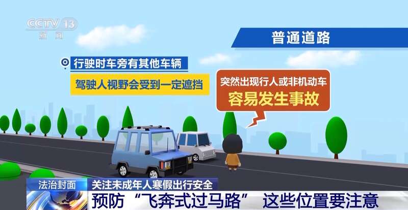 飞奔式过马路,如果再遇到坡路、弯道或者交叉路口,那隐藏的危机就更大了,驾驶员经过这些路段时,需要加倍小心。那么,“飞奔式过马路”导致事故的现象经常会出现在哪些位置?驾驶人和行人又应该注意些什么呢?