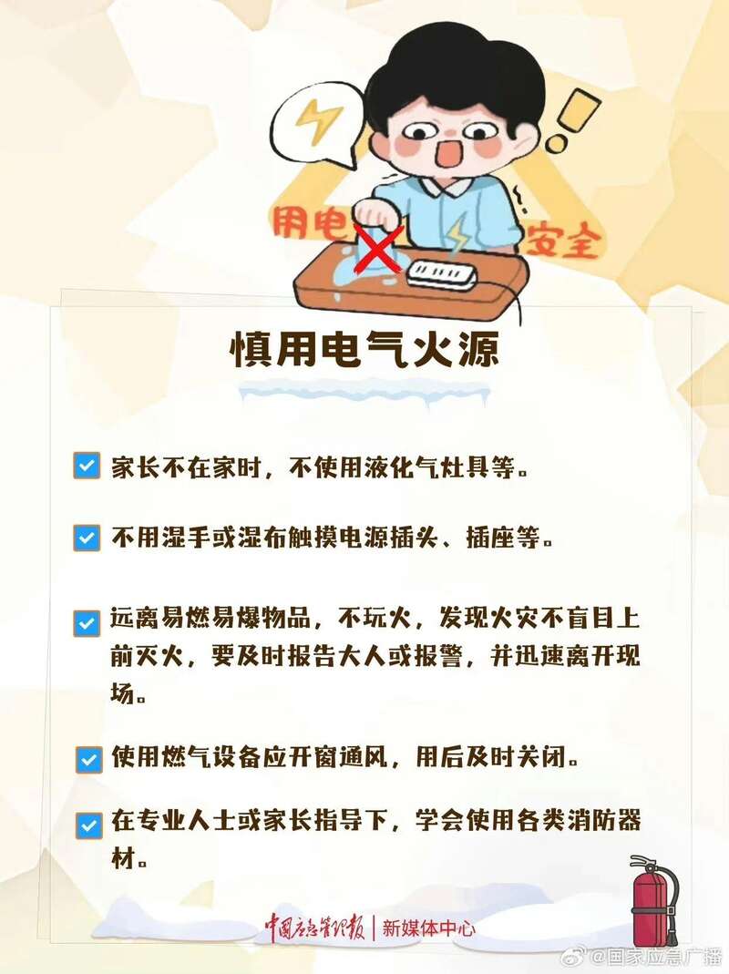 因此,要教育孩子远离火源,若春节燃放烟花爆竹更要多多留意。