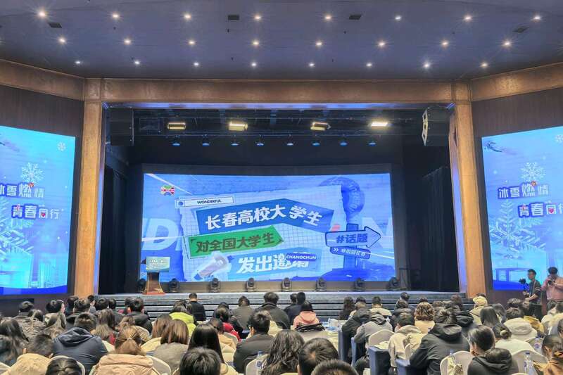 活动现场,大屏幕上呈现了全国大学生“寒假到长春”主题短视频,视频中既有长春大学生的热情邀约,也有各地大学生的热烈回应,还有“寒假到长春”短视频创意大赛特色作品的精彩片段。