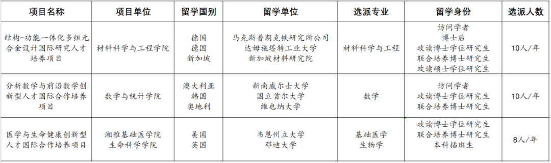 “创新型人才国际合作培养项目”由国家留学基金委设立,旨在加大对一流大学和一流学科建设的支持,进一步推动国内外合作培养创新型国际化人才。项目实行“先立项、后选派”模式,学校围绕国家“双一流”建设学科及其交叉学科、重点建设学科、特色学科申报项目,每年将按照获批项目及人选条件选拔推荐人选,经国家留学基金委审核录取后派出。