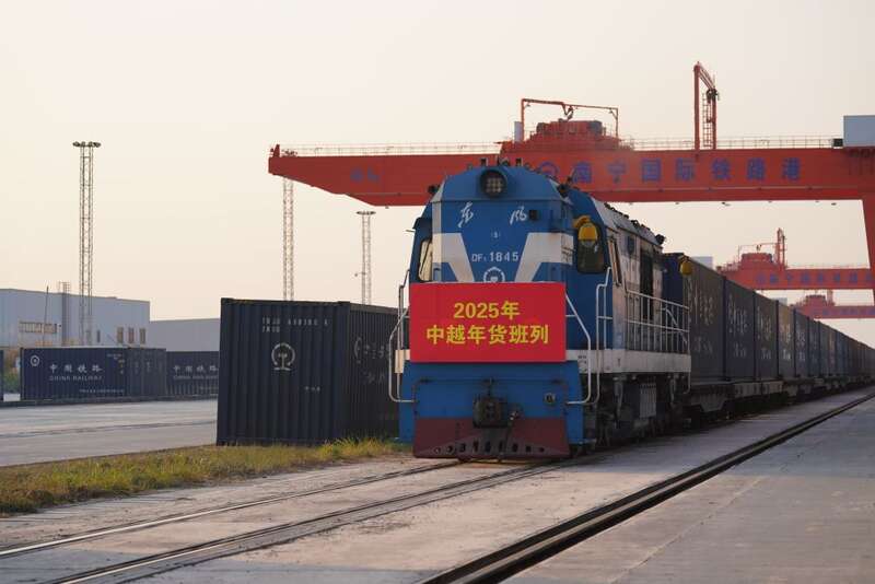 “双向奔赴”的背后离不开中越双方的共同努力。2023年国铁南宁局完成湘桂铁路南宁至凭祥段提速改造,列车运行时速提高到90公里。2024年1月,中越两国铁路公司协商确定班列全程时刻表,从中国南宁南站到越南安员站的运输总时长由40多个小时压缩至最快14个小时。“原来我们出口货物到越南是走海运,现在走中越班列能节省3至5天。”中外运广西有限公司业务经理朱世强说。