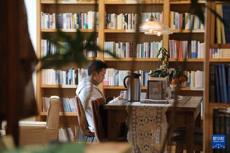 2024年12月19日,游客在蒲江县明月村“远家”文化空间读书品茶。新华社记者 杨进 摄