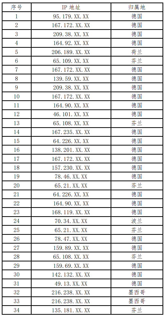 攻击者使用的5个跳板IP完全不重复,位于德国和罗马尼亚等地,反映出其高度的反溯源意识和丰富的攻击资源储备。