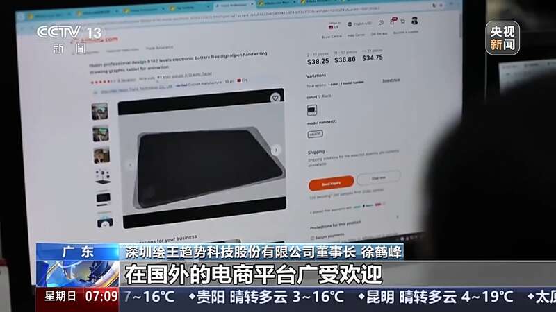 深圳绘王趋势科技股份有限公司董事长 徐鹤峰:我们这款手绘板轻薄便携,在国外的电商平台广受欢迎,去年销量增长了40%。