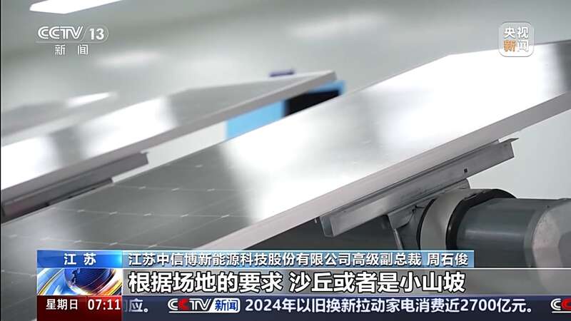 江苏中信博新能源科技股份有限公司高级副总裁 周石俊:它的最大特点是能实现随坡就势,根据场地的要求,沙丘或者小山坡,大幅度降低用户的投资成本。