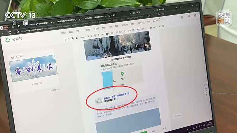 大约5时40分,各个点位的观测信息都已经传送回来。负责汇总的记录员,很快将它们编辑成“雾凇晨报”,在5时57分推送到吉林市旅游局的公众号上。眼下,这份雾凇晨报已经成了游客非常重要的信息参考。