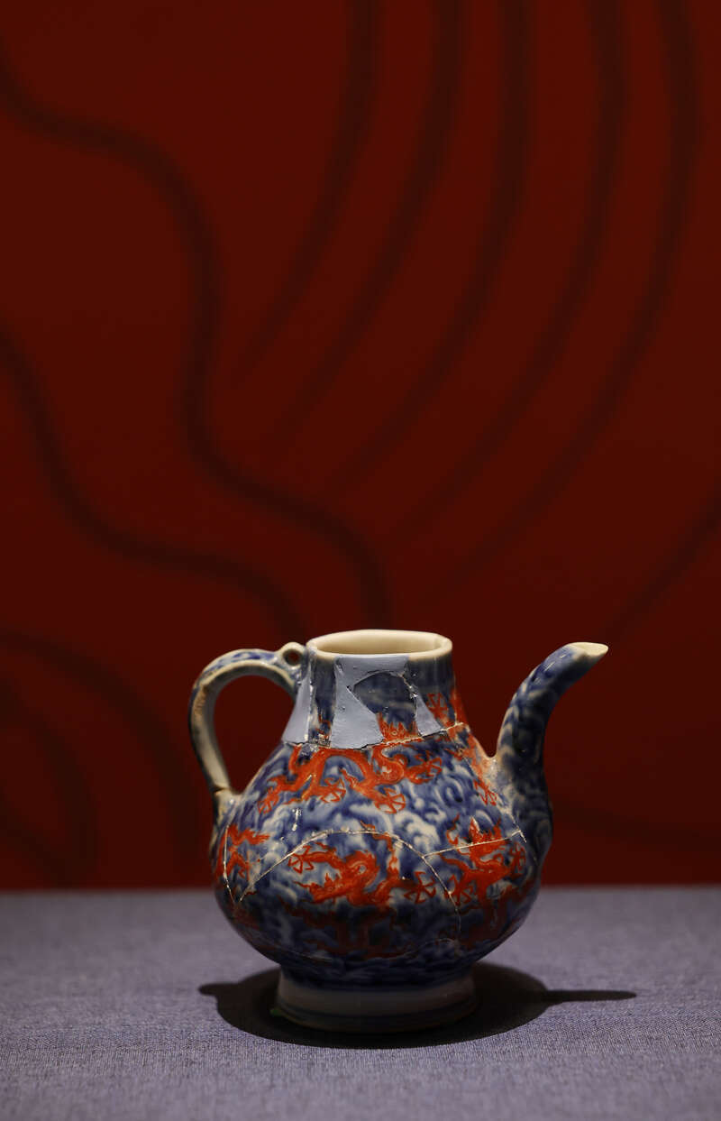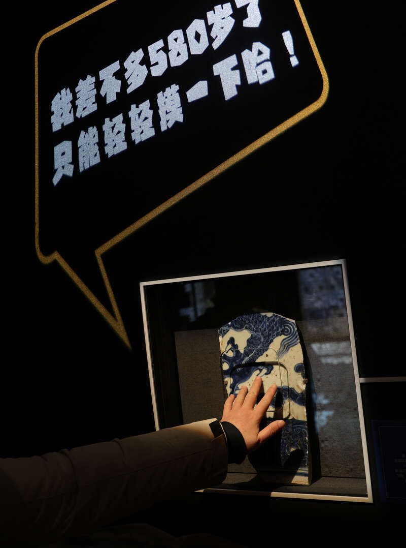 展厅内还设置了触摸御瓷的体验环节,为观众提供亲手感受明代御窑瓷器的难得机会。触摸的瓷片来自明代正统年间未烧制成的青花龙纹大缸,距今已有约580年的历史。