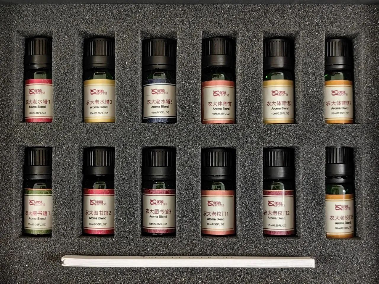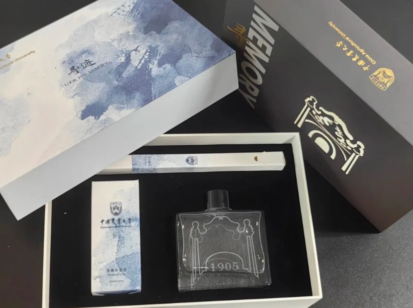 在新媒体盛行、视觉宣传当道的背景下,工作室独辟蹊径,以嗅觉感官体验为出发点,结合视觉形象设计,挖掘农大的“香”,致敬农大精神与文化。经过了四个月的调研、采访和提炼,最终确定了农大四季香型。“过程中,设计团队不仅深入挖掘校园情怀关键词,还通过多轮打样及抽样试香测试,确保香型的准确性和独特性。”