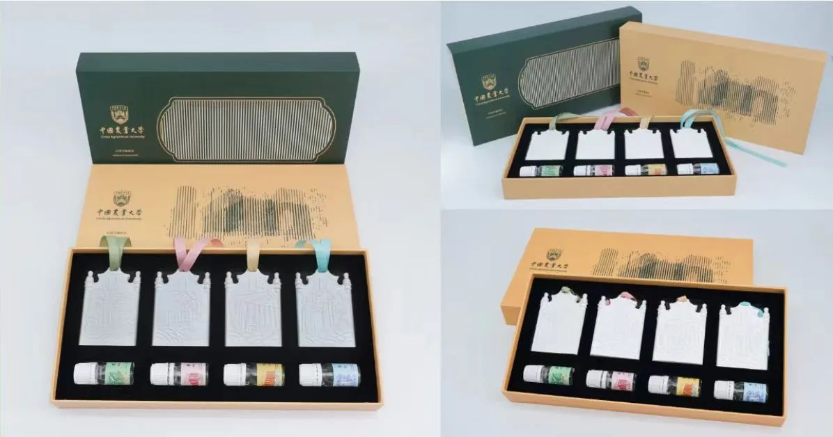 “‘设计+’工作室依托于中国农业大学一院一品项目,致力于通过校-产业集群-学会合作,实现基于实际项目驱动、贯穿产品全生命周期的人才培养,促进全校学生全方位全过程深融合协同育人,连续五年带领学生在北京市大学生文创设计大赛中获得优异成绩”,工作室负责人工学院刘平义副教授表示,开展“香域农大”产学研联动人才培养、“农大味道”创意训练营、设计献礼120周年校庆——打造京城最“香”高校设计实践汇报展等活动,开发了获“北京礼物”文化创意科技商品授权的四大系列5类“四季农大香氛伴手礼”系列文创产品。