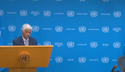 哈克当地时间21日在记者会上的画面 图源:联合国社交媒体账号视频截图