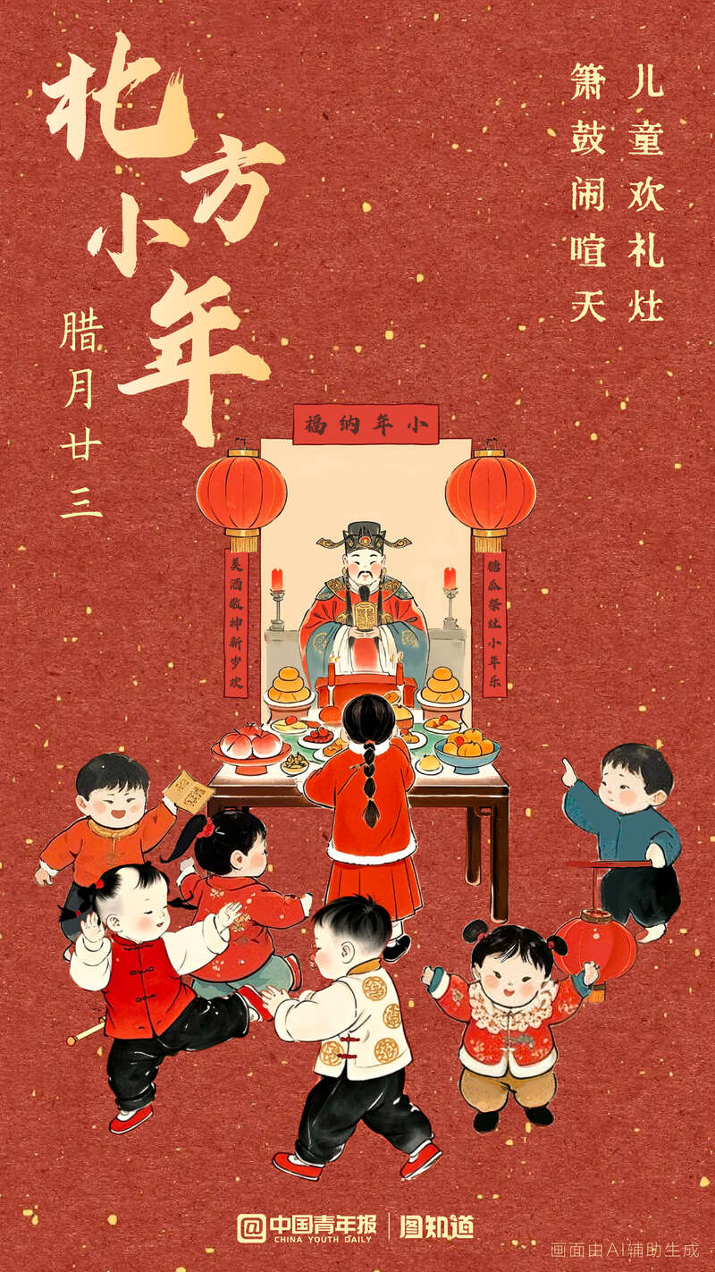 “儿童欢礼灶,箫鼓闹喧天。”腊月二十三,是热闹温馨的北方小年。人们用甜蜜的灶糖“祭灶”,祈愿灶神“上天言好事”;大扫除扫去一年的尘埃,迎来洁净与希望。窗花映照盈盈笑意,饺子承载团圆的期盼。这一天,春节的序幕拉开,家的温暖、年的味道就要到来。