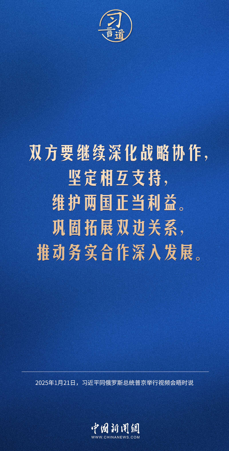 1月21日,国家主席习近平在北京人民大会堂同俄罗斯总统普京举行视频会晤。习近平指出——