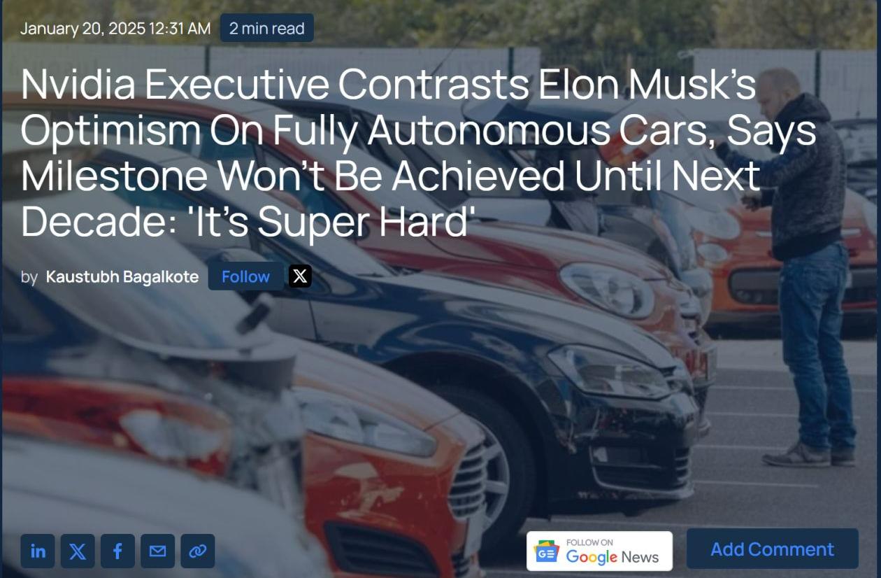 英伟达高管:完全自动驾驶汽车在2030年前难以普及