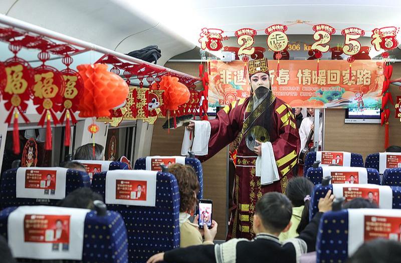 湖北襄阳:文艺志愿者列车献艺 非遗表演温暖返乡路
