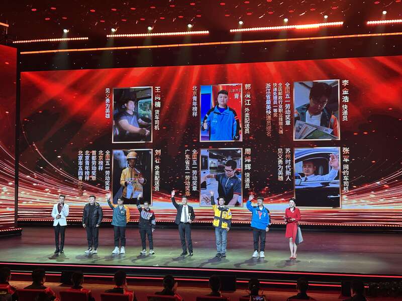 在晚会的现场采访环节,苏州滴滴司机张军手捧奖杯登台。2024年5月26日清晨,他驾车经过苏州市吴江区苏州湾计成桥旁时,得知有人落水后,奋不顾身救下落水女子。张军因此获得了江苏省十大见义勇为司机、苏州好人、滴滴公益在路上公益奖项。张军说:“尽管外面的天气很冷,但是我觉得特别温暖,我希望在工作和生活中一直保持这种温暖。”除张军外,货车司机、美团外卖小哥、顺丰小哥等其他5位新就业形态劳动模范代表,也登台讲述了工作与生活点滴。