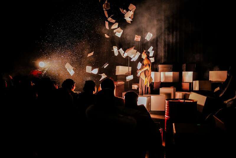 整场演出全程由一位演员完成,剧情环环相扣、层层推进,烧脑的同时富含幽默元素。脱口秀、吉他弹唱、河北梆子……演员18般武艺轮番上演。