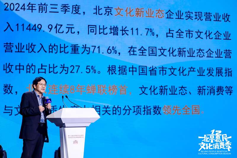 中央党校(国家行政学院)教授、中国行政体制改革研究会行政文化委员会主任祁述裕介绍,2024年,北京居民人均教育文化娱乐支出4541元,高于全国人均3189元,同比增长19.5%;演艺、文化旅游保持强劲增长,电影、图书、艺术品拍卖出现下滑。