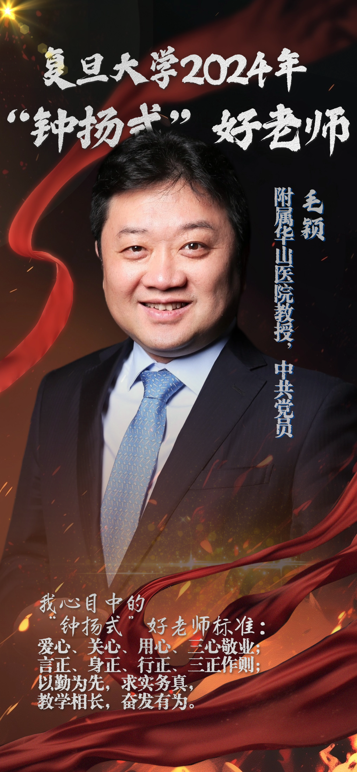 自学生时代起,“正谊明道”的上医院训便仿佛一颗种子,在毛颖心中深深扎根。对他来说,立德是为人处世的不朽基石,更是教书育人的本质所在。