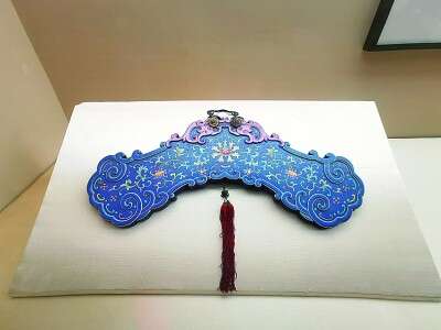 展厅中的文物不仅是历史的见证,更成为传递祥瑞、福泽的象征。言必有意,意必吉祥。展厅中,清代白玉“天官赐福”佩,玉质温润细腻,中间镂雕“天官赐”三字。“福”字在哪呢?就是左右两边雕刻的展翅蝙蝠,以蝠巧寓“福”。云蝠纹画珐琅提梁壶,明黄色的底上绘有蓝色流云纹和红色蝙蝠纹,寓意“洪福齐天”;绘有一圈“福禄寿喜”四个红字的碗,每个字周边还配有五只蝙蝠和一周如意纹,含“五蝠捧寿”之意。这类寓意吉祥的文物备受观众欢迎,都想来“沾沾福气”。