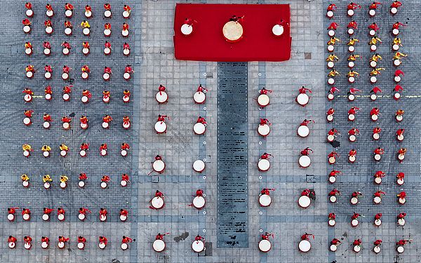 2024年1月25日,江苏省宿迁市泗洪县古徐阁景区,鼓声震撼,来自全县10支锣鼓队百面锣鼓现场精彩演绎,喜迎新春佳节。