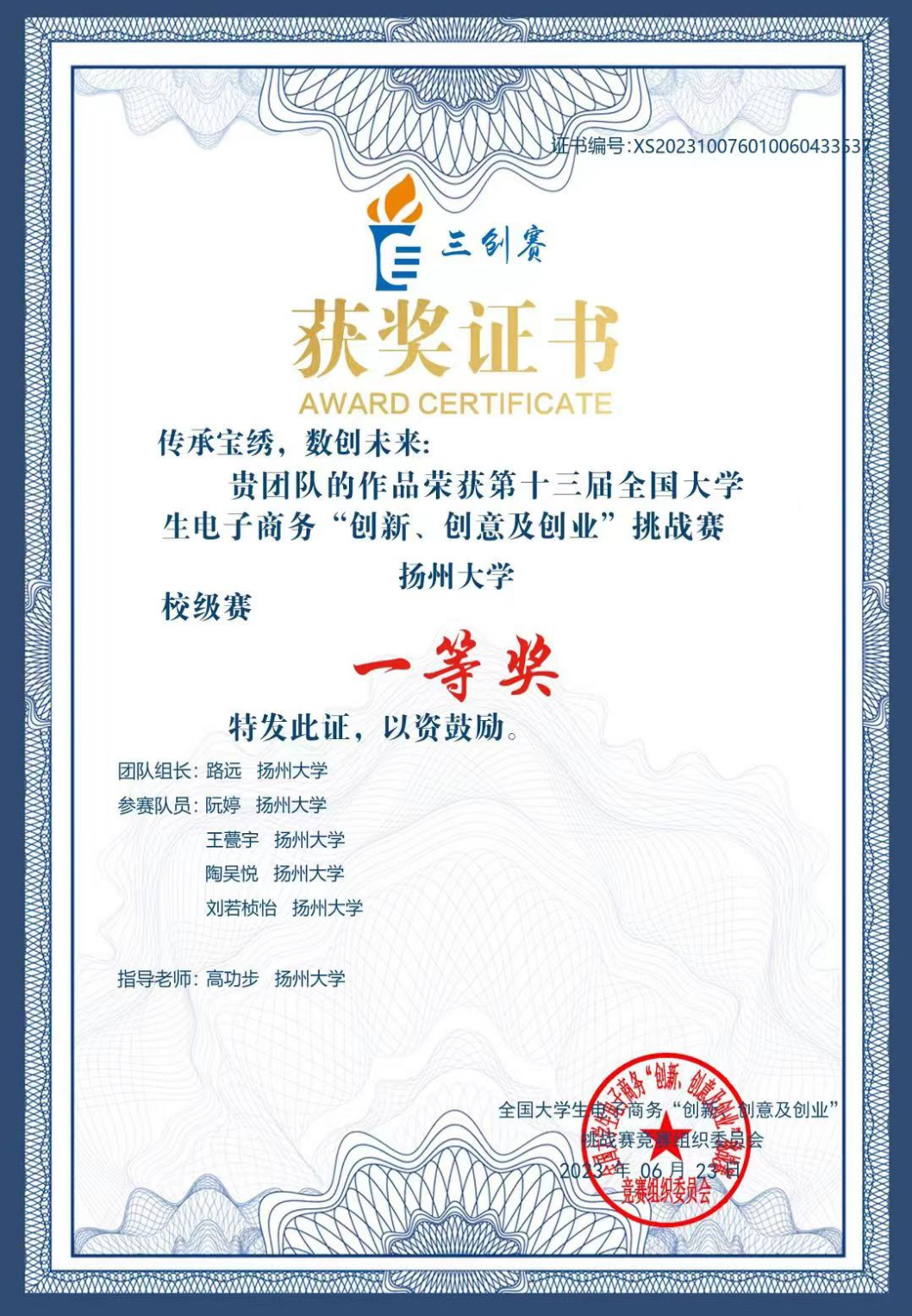大二期间,王甍宇作为项目的第二负责人,参与了“挑战杯”扬州大学创业计划竞赛、“互联网+”大学生创新创业大赛、全国大学生电子商务“创新、创意及创业”挑战赛等多项竞赛。这些深入实践的经历无疑为她提供了不断积累经验、锻炼心智与勇气的宝贵机会。同时,王甍宇在参与校级创新项目中,通过灵活运用计量经济学OLS回归模型的研究方法,深入探讨了游客食物浪费的内外部因素,并通过文献研究和实地调研,提出了针对扬州市的解决路径。这一实践活动,宛如一把钥匙,开启了她将专业知识与实际问题融会贯通的大门。她不仅能娴熟地运用所学解决现实难题,还在团队协作的浪潮里,不断打磨自己,科研能力如同雨后春笋般节节攀升 。