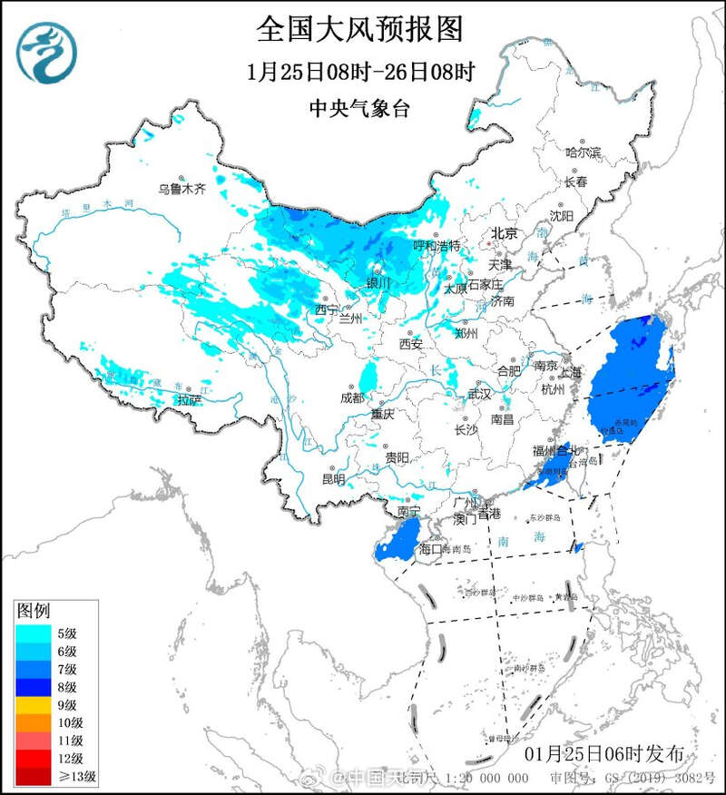 大风→25日至26日,内蒙古、西藏、青海、甘肃、宁夏、山西、四川等地有5~6级、阵风7~8级的大风。