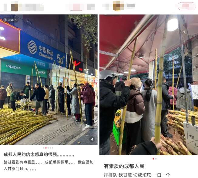 作为四川地区过年期间必不可少的特产,甘蔗象征红红火火,也寓意节节高。