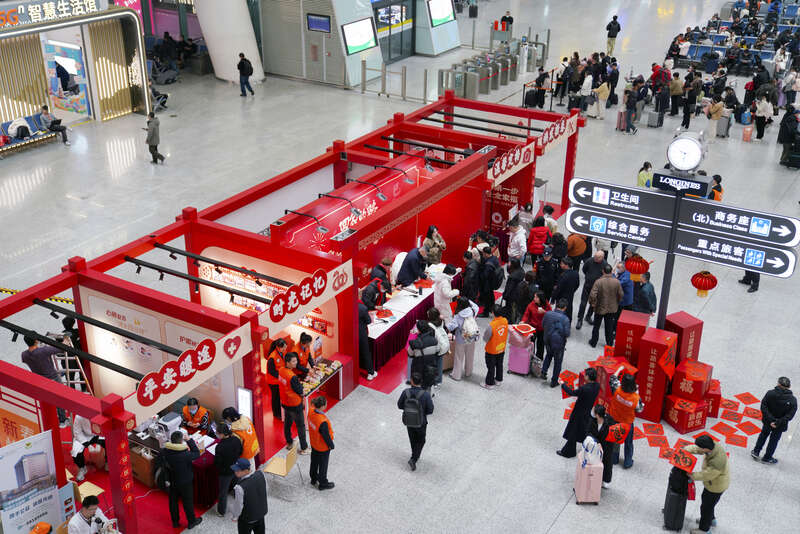 杭州东站候车室设置活动专区,打造平安医疗点、春运民俗屋、幸福照相馆等服务专区。受访者供图