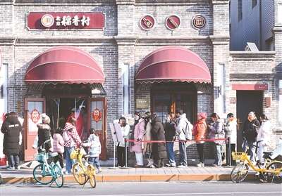 老北京人素有过年“不动火”的传统习俗,这也让丰泽园的特色面食成为了京城百姓必购的年货之一。焦香诱人的烤馒头、包裹着缕缕银丝的银丝卷、香甜绵软的豆沙包、嚼劲十足的杠头……这些传统美食不仅承载着老北京的味道,更传递着浓浓的节日氛围。春节前夕,丰泽园饭店门前的年货售卖点吸引了众多顾客前来选购,大家纷纷挑选心仪的年货,为即将到来的春节增添喜庆。