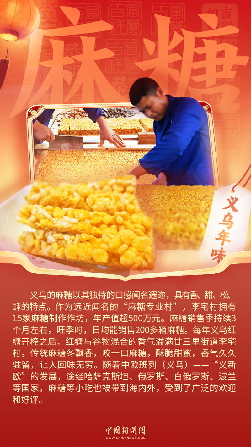 义乌,这座被誉为“世界超市”的城市,不仅是全球最大的小商品集散地,更有着丰富的非物质文化遗产。年味正浓,义乌经济也在春节期间持续升温,各类年货远销海内外,香甜松酥的麻糖、甜蜜可口的红糖、制作精美的剪纸……无不展现了中华传统的独特魅力。来,一起感受义乌的浓浓年味↓↓