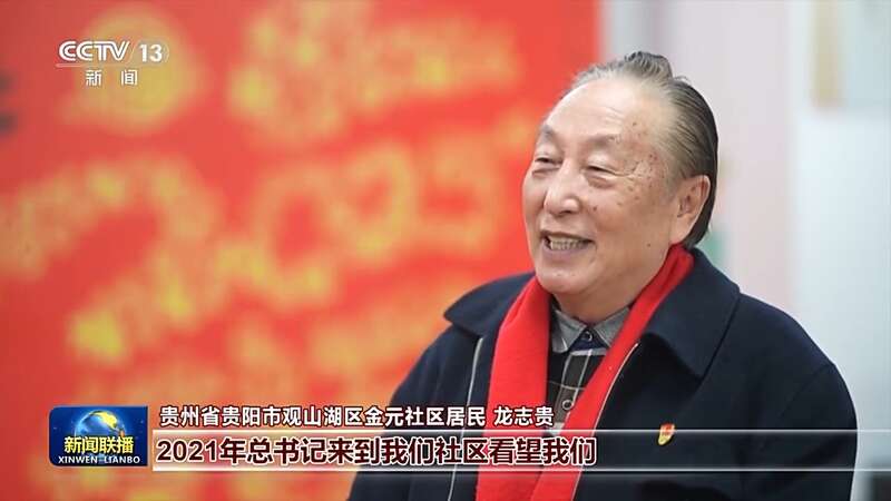 贵州省贵阳市观山湖区金元社区居民 龙志贵:2021年总书记来到我们社区看望我们,让我们感受到关心和关爱。现在国家的政策都很好,退休生活过得很安逸。