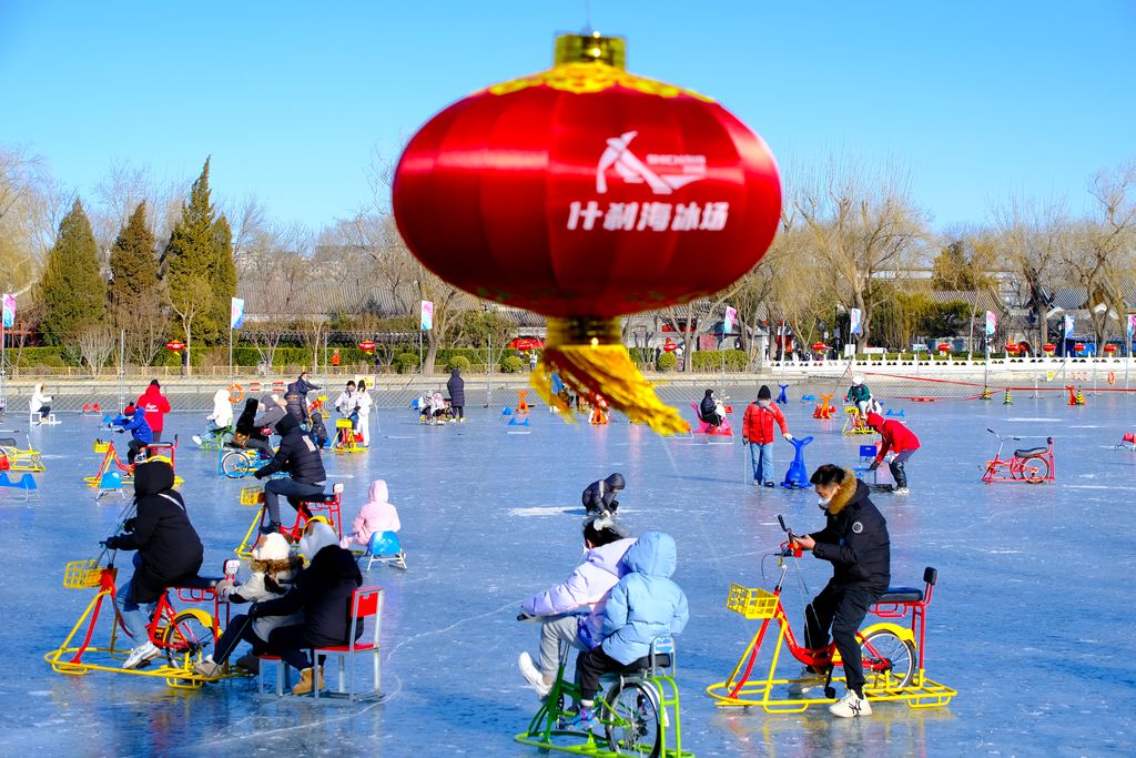 北京什刹海冰场热闹非凡 游人畅享滑冰乐趣
