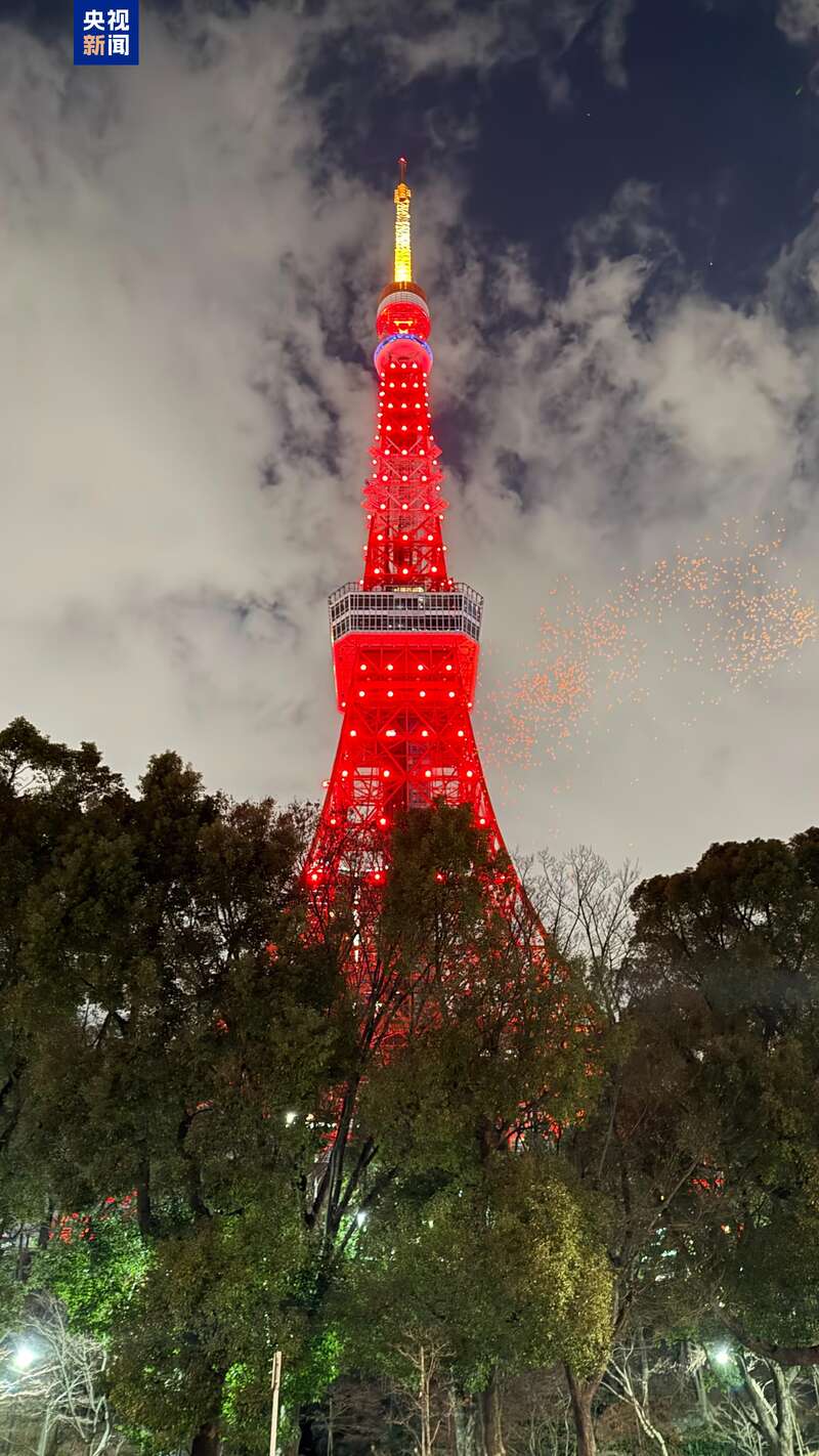 这是东京塔第七次在除夕夜点亮“中国红”。在当天的点亮仪式上,中日两国艺术家带来了歌舞等节目,新春氛围浓郁。