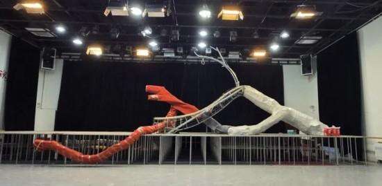 节目使用了春晚有史以来最大的道具,在“画卷”中搭建了一根长9.5米、高4.5米的“松枝”,松枝与喜鹊取“送喜”的吉祥寓意。枝条巧妙地从“画框”中探出,模糊了平面与立体的界限,仿佛“画卷”中的“生命”破画而出。