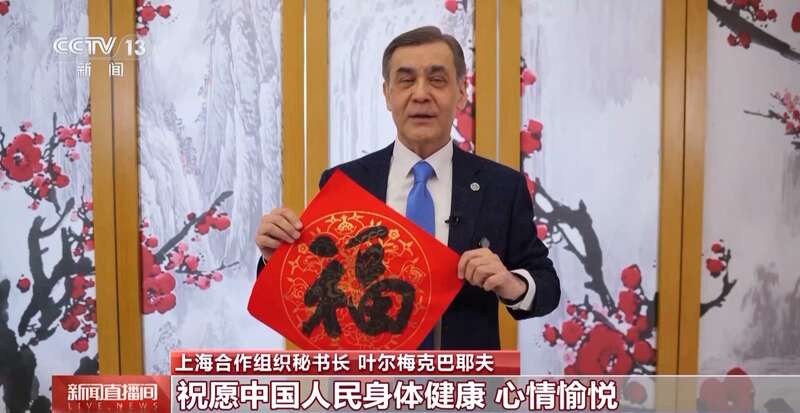 上海合作组织秘书长 叶尔梅克巴耶夫:在中国春节到来前夕,祝愿中国人民身体健康,心情愉悦,与家人共度美好时光,在新的一年里幸福快乐,取得新的成功。尊敬的中国朋友们,我祝贺大家春节快乐,万事如意。