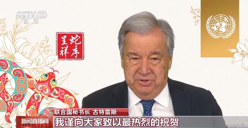 联合国秘书长 古特雷斯:春节快乐,我谨向大家致以最热烈的祝贺。蛇象征着智慧和坚韧,让我们在这些品性的指引下,重振实现和平、平等和正义的决心。让我们满怀希望迎接新的开始,为所有人创造一个更美好的未来。祝大家蛇年健康、幸福、繁荣,感谢中国和中国人民对联合国、多边主义和全球合作的坚定支持。