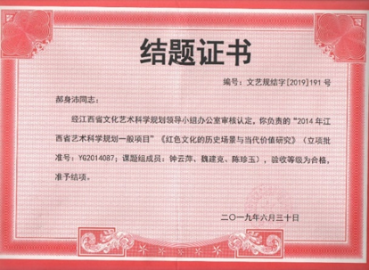 近5年,学校教师获批《中央苏区科技史料收集、整理与研究》《中央苏区红色报刊的人民性及当代价值研究》《新时代中国红色经典艺术的数据重建和传播研究》《中央苏区时期红色工业遗产的当代价值与保护利用研究》《“课程思政”理念下红色基因在高校艺术教育中的价值与应用研究》等全国哲学社会科学基金、自然科学基金、教育部高校人文社科基金项目100余项。