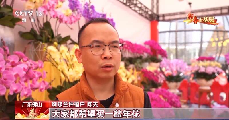 蝴蝶兰种植户 陈夫:花市一开就是准备过年了,大家都希望买一盆年花,也是对来年的美好生活的期待。
