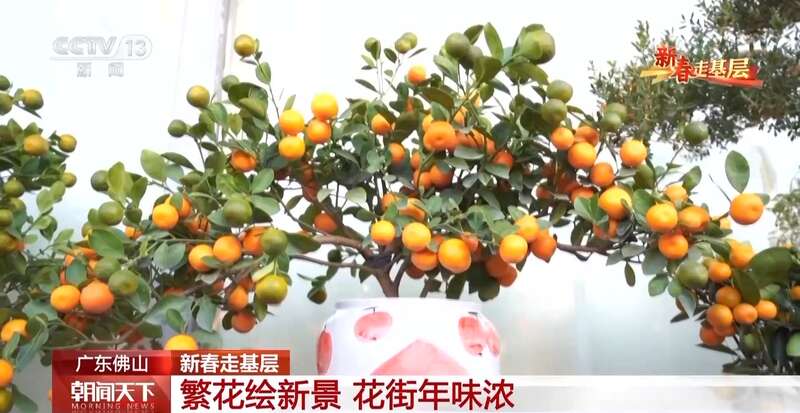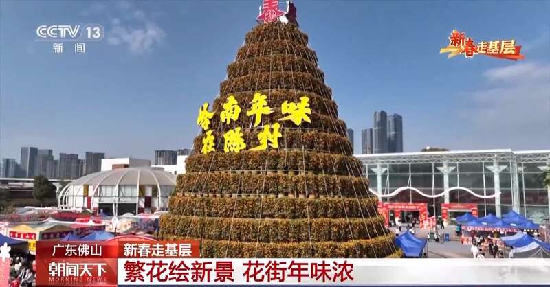 第41届陈村迎春花市已热闹开市。十里花街上,600多个年花档口一字排开,近万种年宵花争奇斗艳。花市广场的中间,一座由999盆年橘精心堆砌而成,高达16.8米的年橘塔,传递着“红红火火”“大吉大利”的好意头。作为全国最大的年橘种植基地,陈村年橘是花市中最抢手的商品。