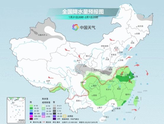 南方大部地区的朋友将主要收到雨水,阴雨将持续至2月2日。