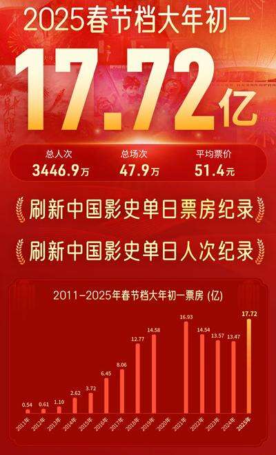 大年初一票房超17.72亿,刷新中国影史单日票房纪录