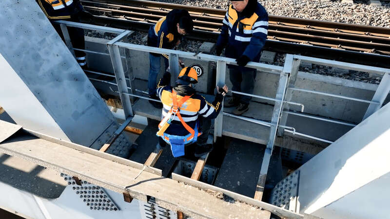 “螺栓松了很清脆,没松就是闷响,我敲你听听。”桥隧工白岳禾边说边敲着螺栓。在这个如井下一般的桥洞中,四面都是整齐的螺栓。桥下的流水声、桥洞口的风声、有节奏的敲击声……合起来像是一部乐章。而这个乐章还有下半部分。