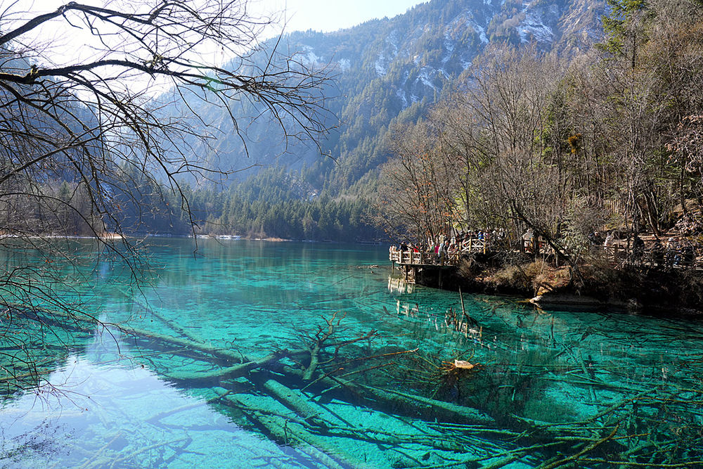 2025年1月17日,四川省阿坝州九寨沟景区阳光明媚,图为五花海风光。 中新社记者 安源 资料图