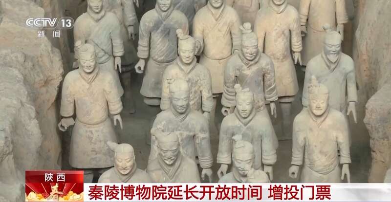 秦始皇帝陵博物院副院长 田静:每天早上从8点半提前到7点半开放,下午从4点半延迟到5点钟检票。在初一到初六这6天当中,我们每天增加一万人次的参观名额。