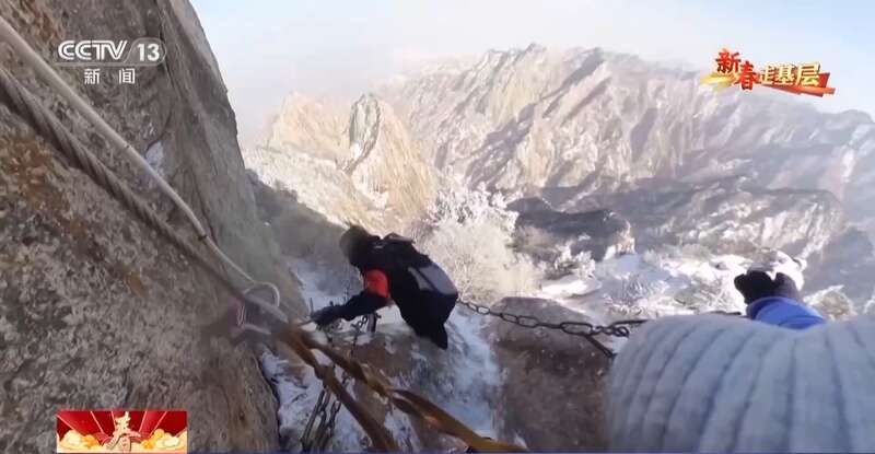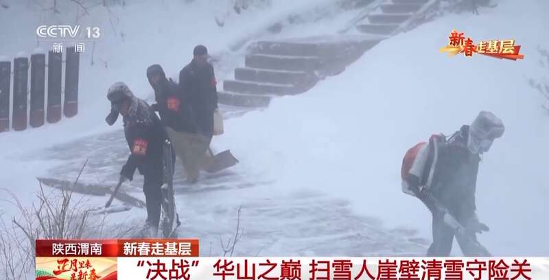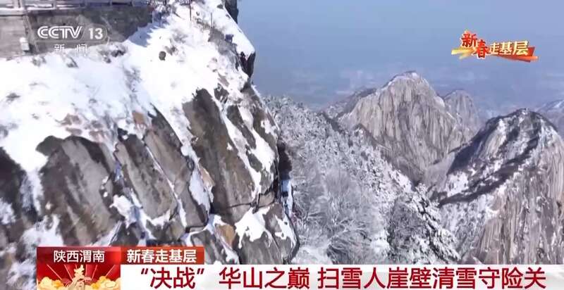“决战”华山之巅!这群扫雪人崖壁清雪守险关