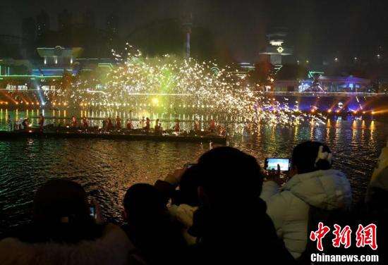 重庆上演非遗大秀 “火树银花”湖面绽放贺新春